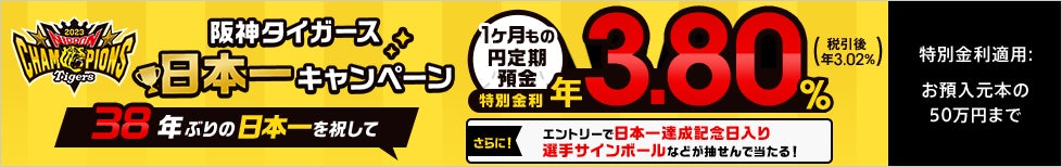 ~38年ぶりの日本一記念に「1カ月もの円定期預金」金利が年3.8%(税引前)へアップ~