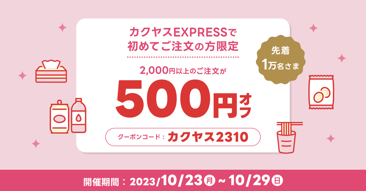 関西初出店を記念し、「カクヤスEXPRESS」で2,000円以上でのご注文の際に利用できる500円オフクーポンを関西11店舗限定で配布いたします。
