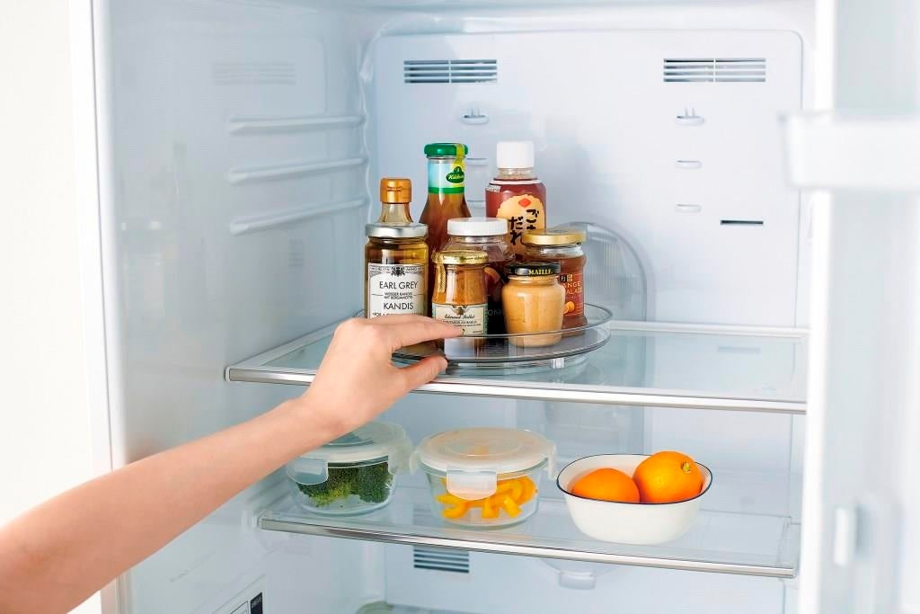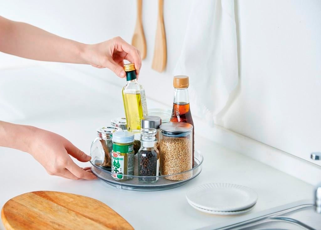 自立しにくい調味料も倒れない!「冷蔵庫の回転台マワリーナ(深型)」