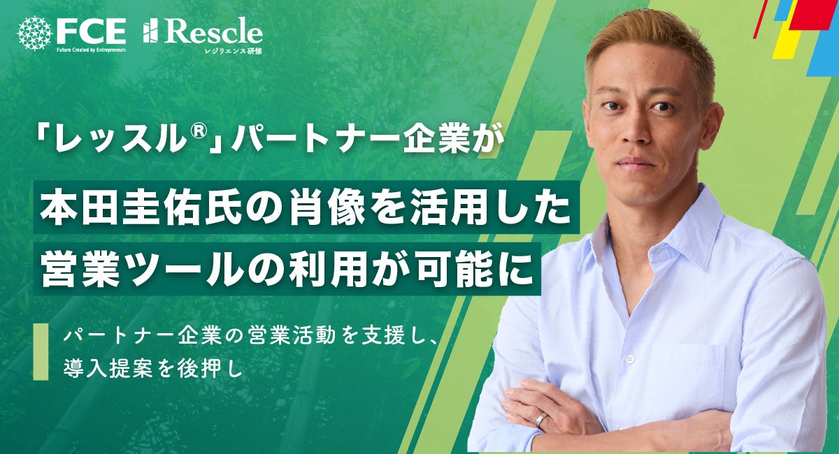 株式会社FCE(本社:東京都新宿区、代表取締役社長:石川淳悦、証券コード:9564)は、当社が提供する企業向けレジリエンス研修「レッスル®」のパートナー制度において、アンバサダーである本田圭佑氏の肖像画像を用いた指定の営業ツールを、パートナー企業が利用できるようにすることを決定いたしました。これにより、パートナー企業は営業資料やWebバナー等において、当社指定のクリエイティブを活用した提案活動が可能となります。今後もパートナー企業への支援体制を強化し、「若手社員のメンタル不調」や「早期離職」といった企業課題への対応を後押ししてまいります。