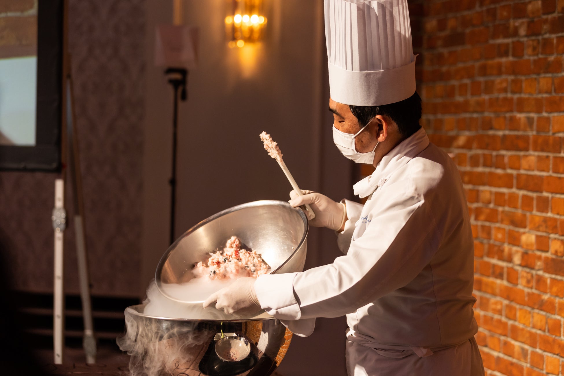 今回のイベントでは配信バトルだけでなく、バレンタインイベントならではの取り組みとして「利きチョコチャレンジ」を実施。チャレンジは計2回で、1回戦は各ライバーに2つのチョコレートが配られ、色味・香り・味わいなどを比べてチョコレートと準チョコレートを見極めるチャレンジ。ライバーは、2つのチョコレートの違いをリスナーに伝えながら、リスナーと一緒に回答を考えました。2回戦は5個入りのチョコレートを食べて、カカオ含有量の合計を当てるチャレンジ。かなりの難問に各ライバーが真剣にチョコレートと向き合いました。他にも、パティシエが会場でフォンダンショコラの仕上げを実演して各ライバーに振舞うなど、パティスリーとのコラボレーションで実現したバレンタインらしい豪華なイベントになりました。