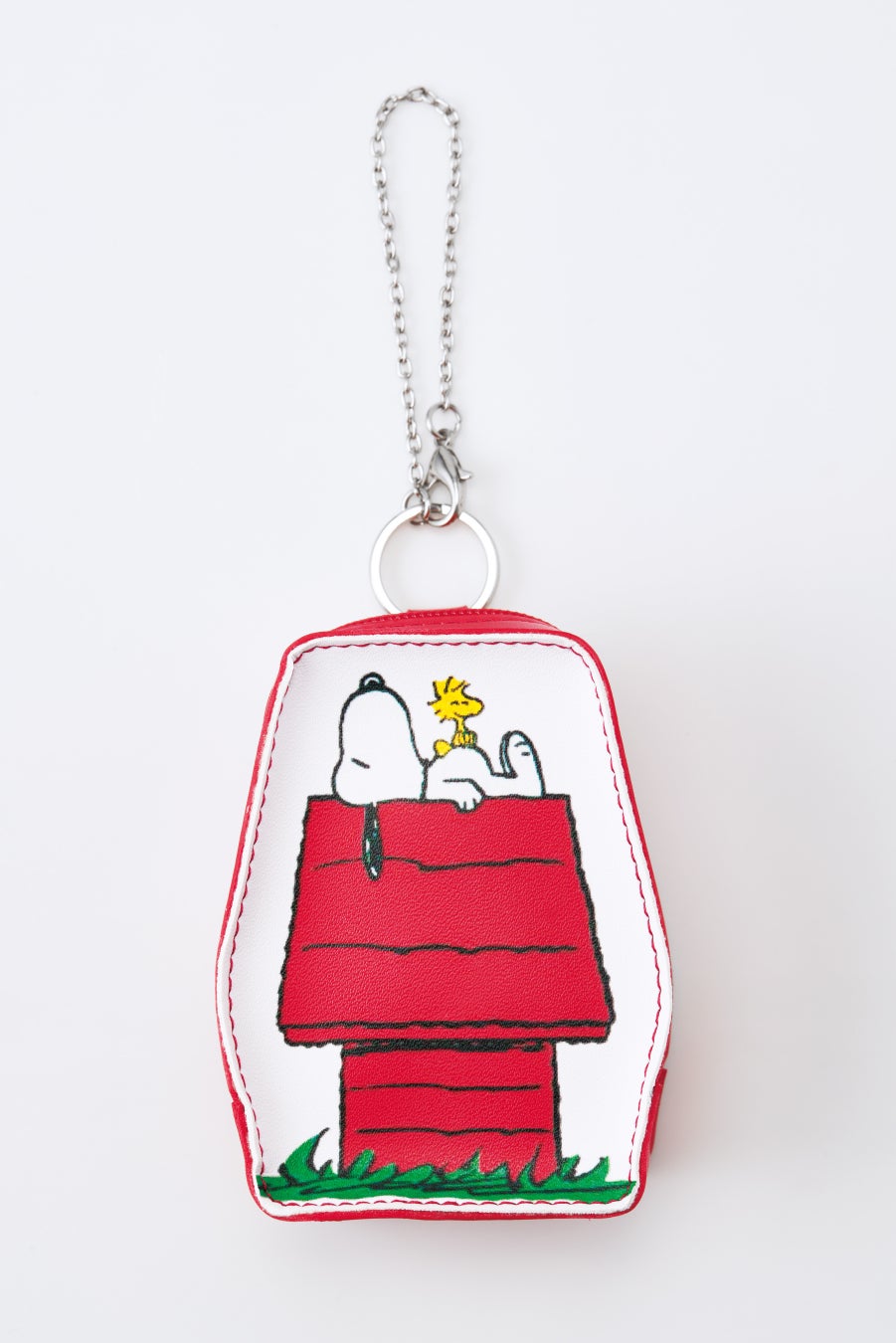 エコバッグには、ドッグハウスの屋根でお昼寝するスヌーピーのデザイン、もしくは、愛らしいおすましフェースのスヌーピーのデザインのポーチ型チャームがついています。