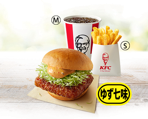 〔和風チキンカツバーガー本格ゆず七味、オリジナルチキン、ポテト(S)、ドリンク(M)〕