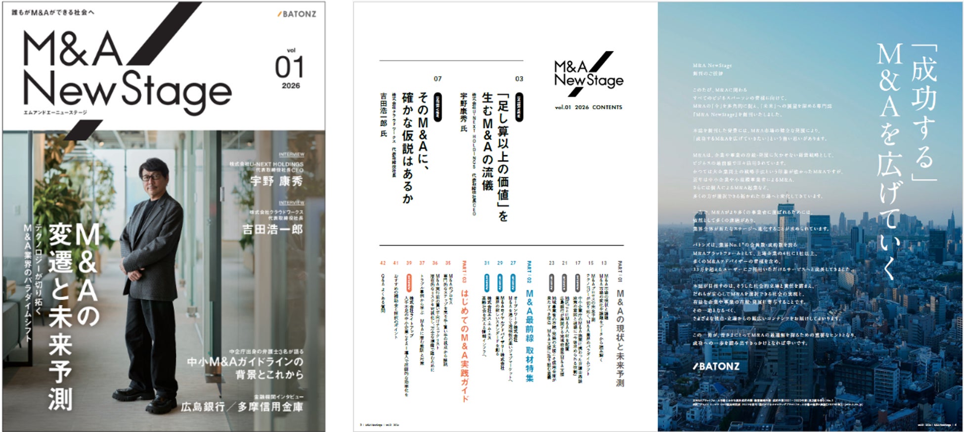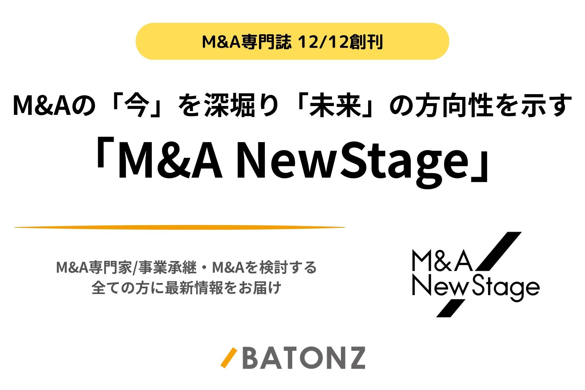 M&A・事業承継支援プラットフォーム「BATONZ(バトンズ)」を運営する株式会社バトンズ(本社:東京都中央区、代表取締役CEO:神瀬悠一、以下バトンズ)は、2025年12月12日(金)にM&A専門誌「M&A NewStage」を創刊することをお知らせします。