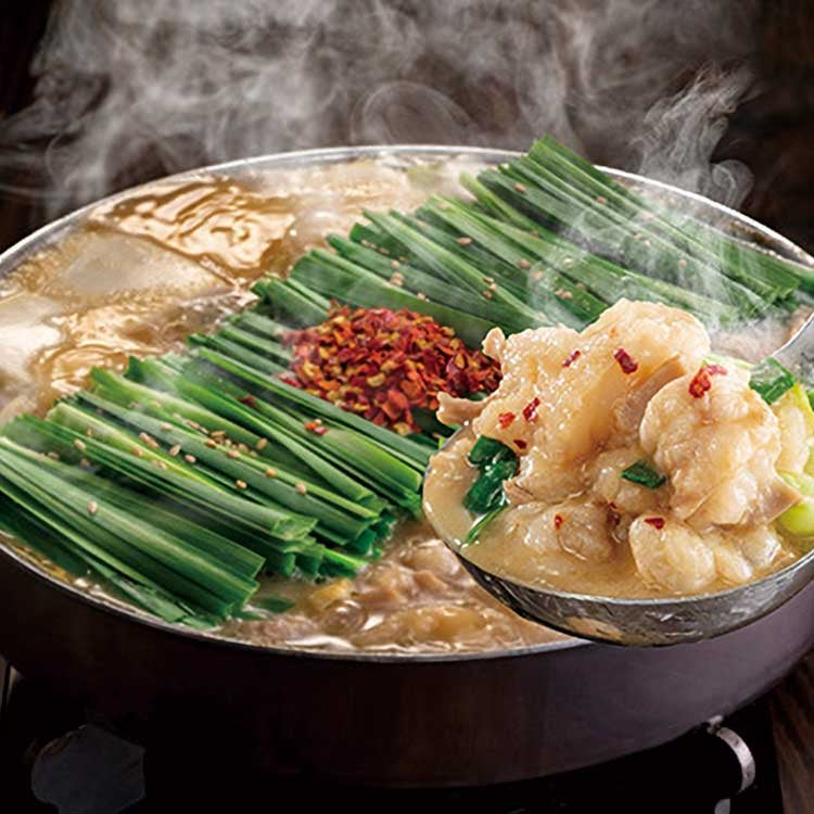 数種類の味噌をブレンドした秘伝スープに、肥育3年未満の脂ののった牛の小腸だけを使ったプリプリのもつ。全国にお店を展開する博多もつ鍋専門店『おおやま』の味を、ご家庭へお届けします。