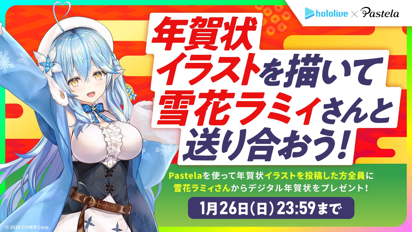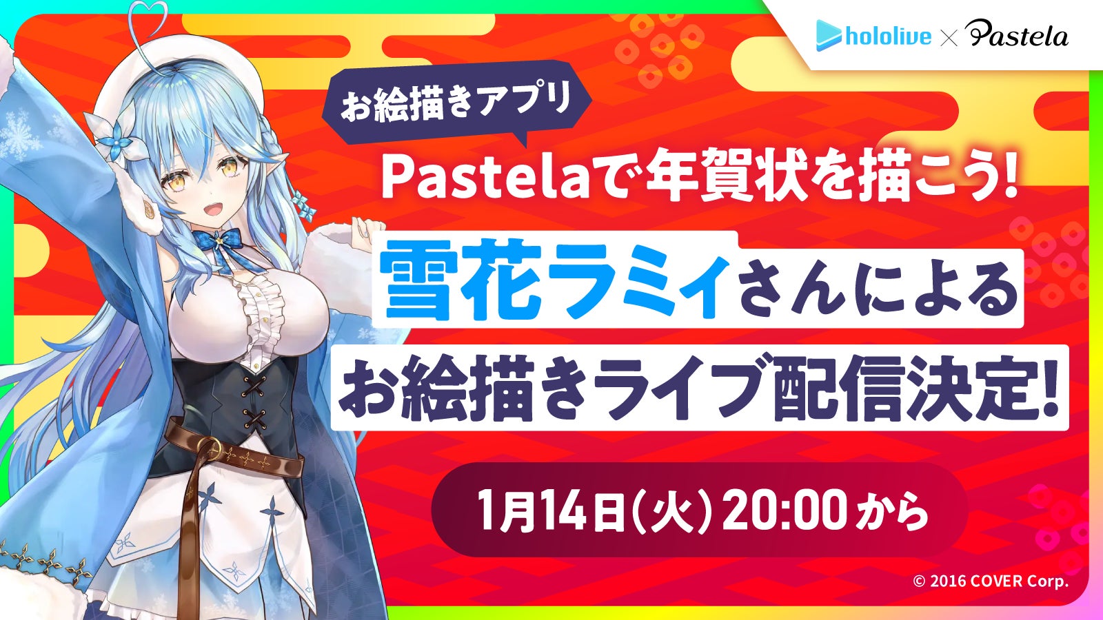 ピクシブ株式会社(本社:東京都渋谷区、代表取締役CEO:丹羽 康弘、以下ピクシブ)が運営するiPad向けのペイントツール「Pastela(パステラ)」は、女性VTuberグループ「ホロライブ」所属の雪花ラミィさんとのコラボ企画「年賀状イラストを描いて雪花ラミィさんと送り合おう!」を2024年12月20日(金)より開催します。