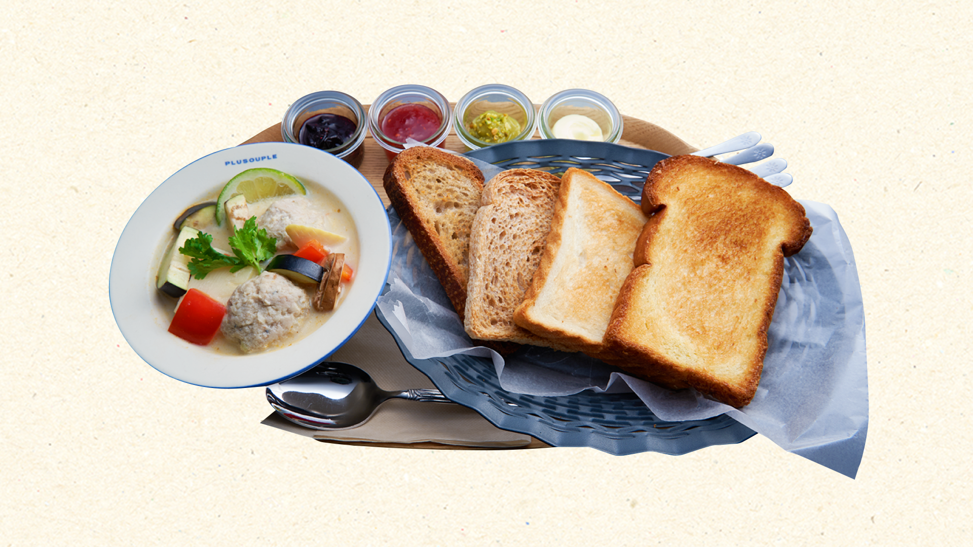 「しなやかな暮らし」を提案するパンとスープの店「PLUSOUPLE(プラスプレ)」の2号店(本店:鎌倉市)。豊かな四季のある日本だからこそ楽しめる季節の“旬”に着目し、こだわりのパンをはじめ、旬の食材を使った心も体も温まる二十四節気のスープ、季節のフルーツのスプレッドを提供しています。