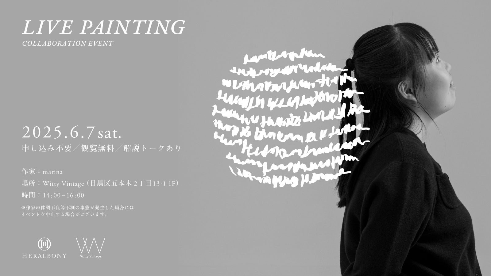 本コラボレーションは、「異彩を、放て。」をコンセプトに、主に知的障害のある作家のアートを社会に届けてきた「HERALBONY」と、“ひとつひとつの違いを、そのまま愛する”ことを大切にしてきた「Witty Vintage」の想いが重なり合い、実現しました。
