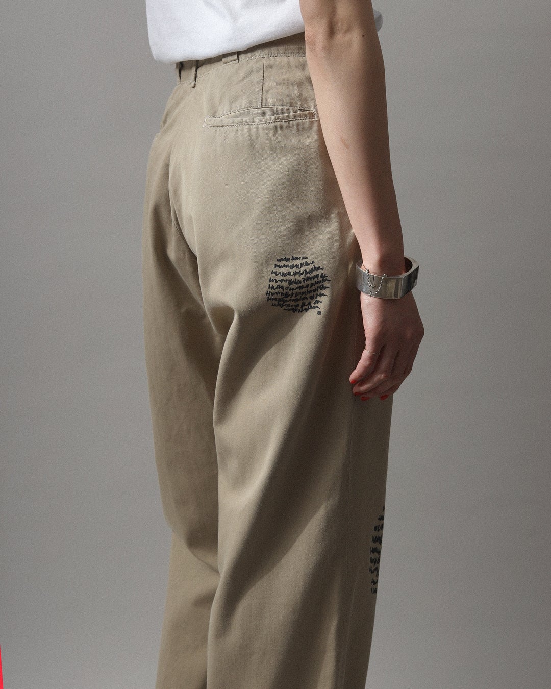 marinamoji(※marina文字)とは、ヘラルボニー契約作家・marinaによる独自のタイポグラフィ。古代なのか、宇宙なのか、それとも未来の言語なのか。その意味は誰にもわからないまま、彼女の中から自然と生まれるオリジナルの「言葉」です。視覚的にも印象的なその文字は、アートとしても存在感を放ち、今回のコラボアイテムでも特別なアクセントとして生かされています。