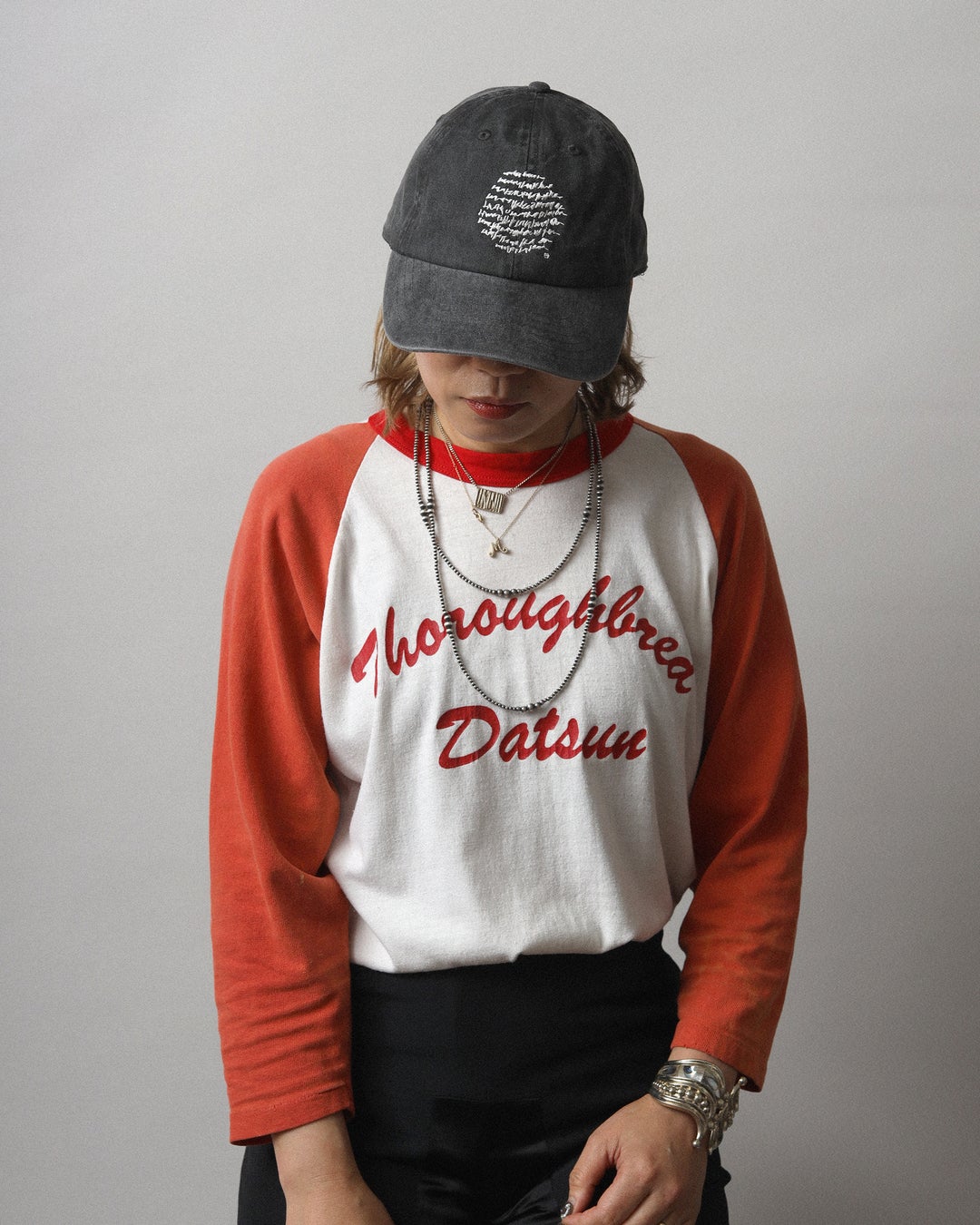 今回のために登場するのは、ヘラルボニー契約作家・marinaによるオリジナルの言葉と表現「marinamoji(※marina文字)」を、80〜90年代のアメリカンヴィンテージやデッドストックアイテムに、手刷りステンシルで落とし込んだ特別なコレクションで、キャップ以外のアイテムは、すべてが一点ものの仕上がりとなっています。