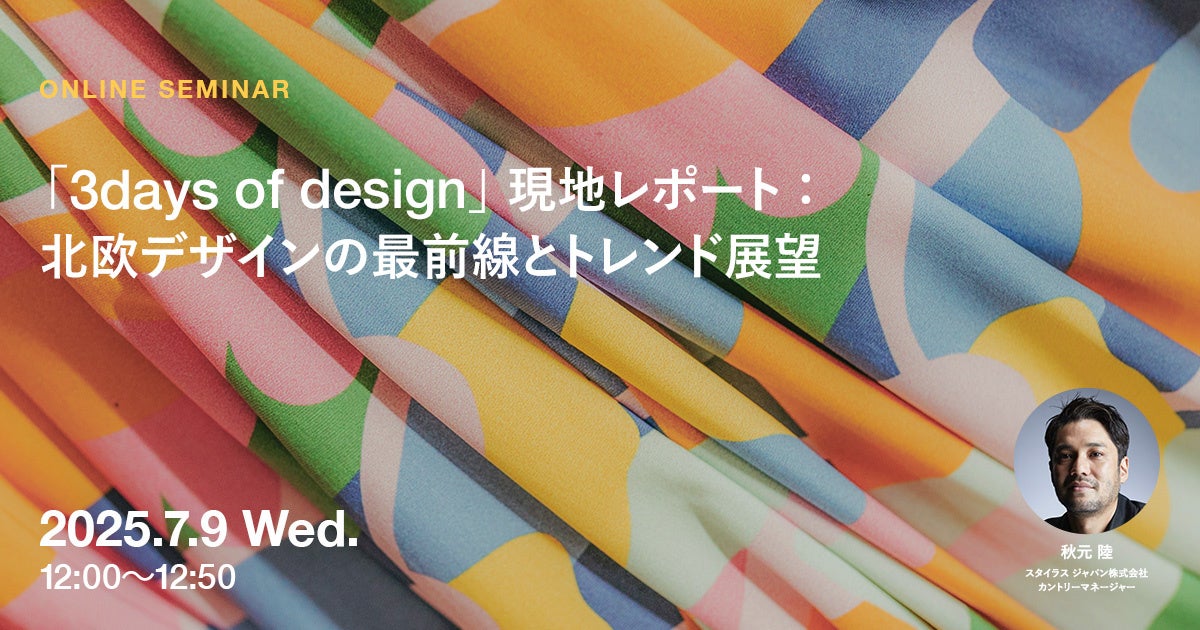 2025年7月9日(水)ウェビナー開催のお知らせ『「3days of design」現地レポート:北欧デザインの最前線とトレンド展望』