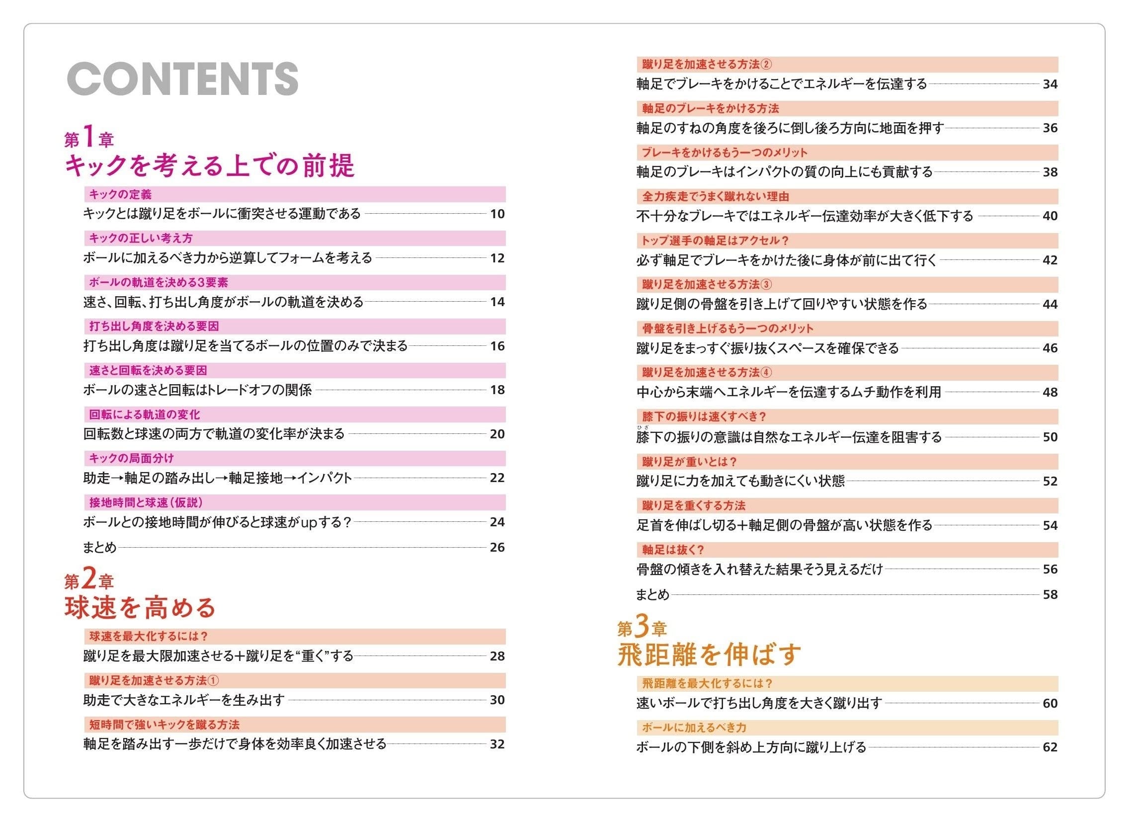 本書では感覚的なことは一切排除をして、物理学的に正しいとされるキックの理論を記し、いままでは慣習的に正しいとされていたけれども、物理学的には間違っていたキックの常識にメスを入れます。