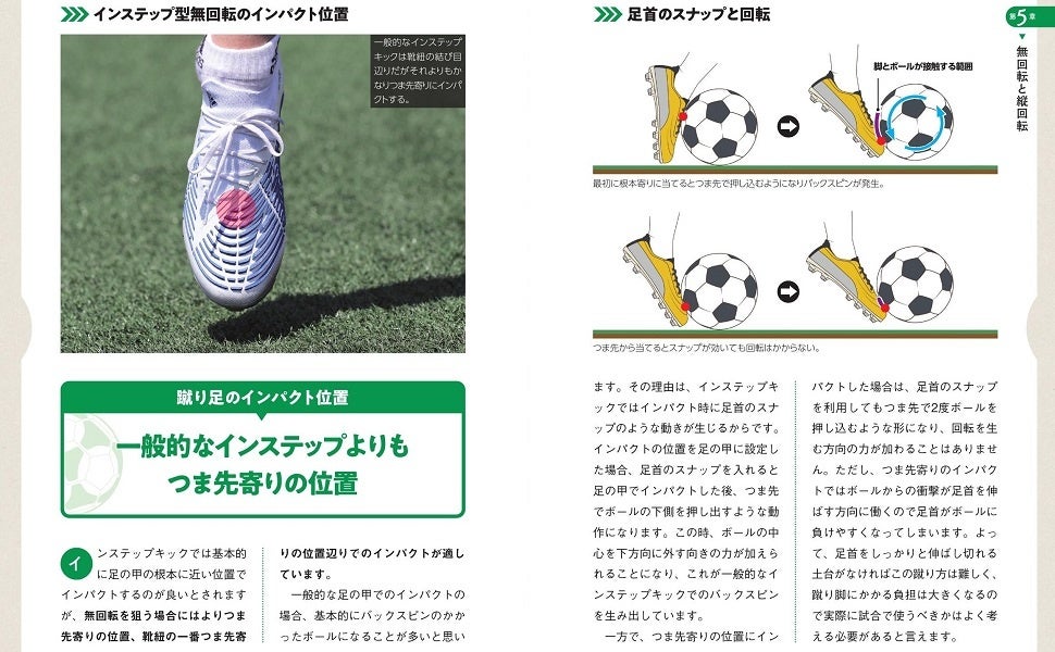 本当に強いシュートの蹴り方、本当にゴールに繋がるフリーキックの蹴り方、本当に味方が求めるパスの蹴り方を身に付けられます。オールカラーでイラストと写真をふんだんに使い、サッカープレイヤー、サッカー指導者だけでなくサッカー少年・少女の保護者の方などにも理解しやすい作りとなっています。