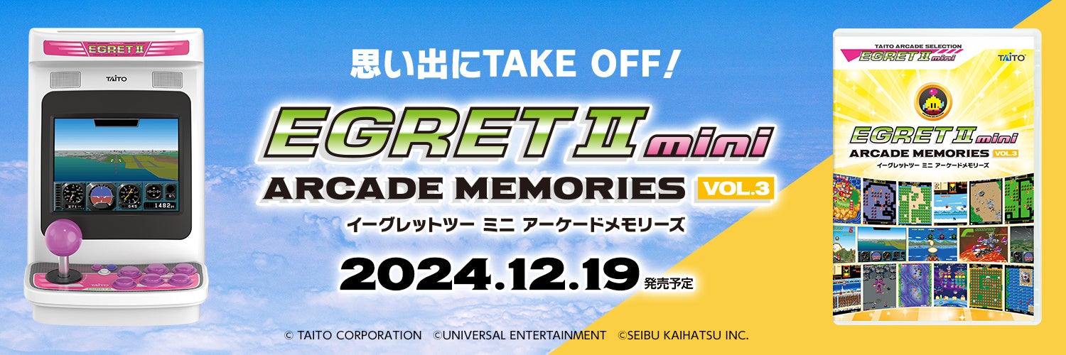 株式会社タイトー(本社:東京都新宿区、以下タイトー)は、2024年12月19日(木)に発売する『イーグレットツー ミニ』専用ソフト収録SDカード『アーケードメモリーズVOL.3』の購入受付を開始しました。また、本日8月23日(金)に、本体アップデートの更新データを公開しました。