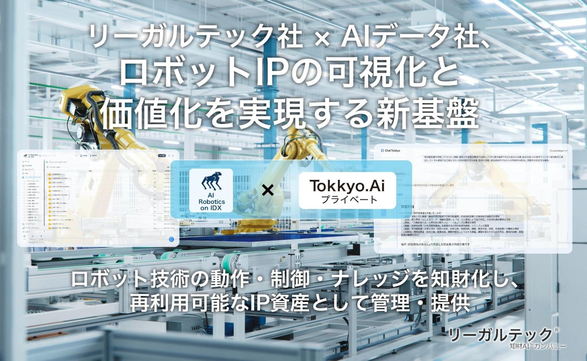 リーガルテック社 × AIデータ社、ロボットIPの可視化と価値化を実現する新基盤「AI Robotics on IDX × Tokkyo.Ai」を共同発表
