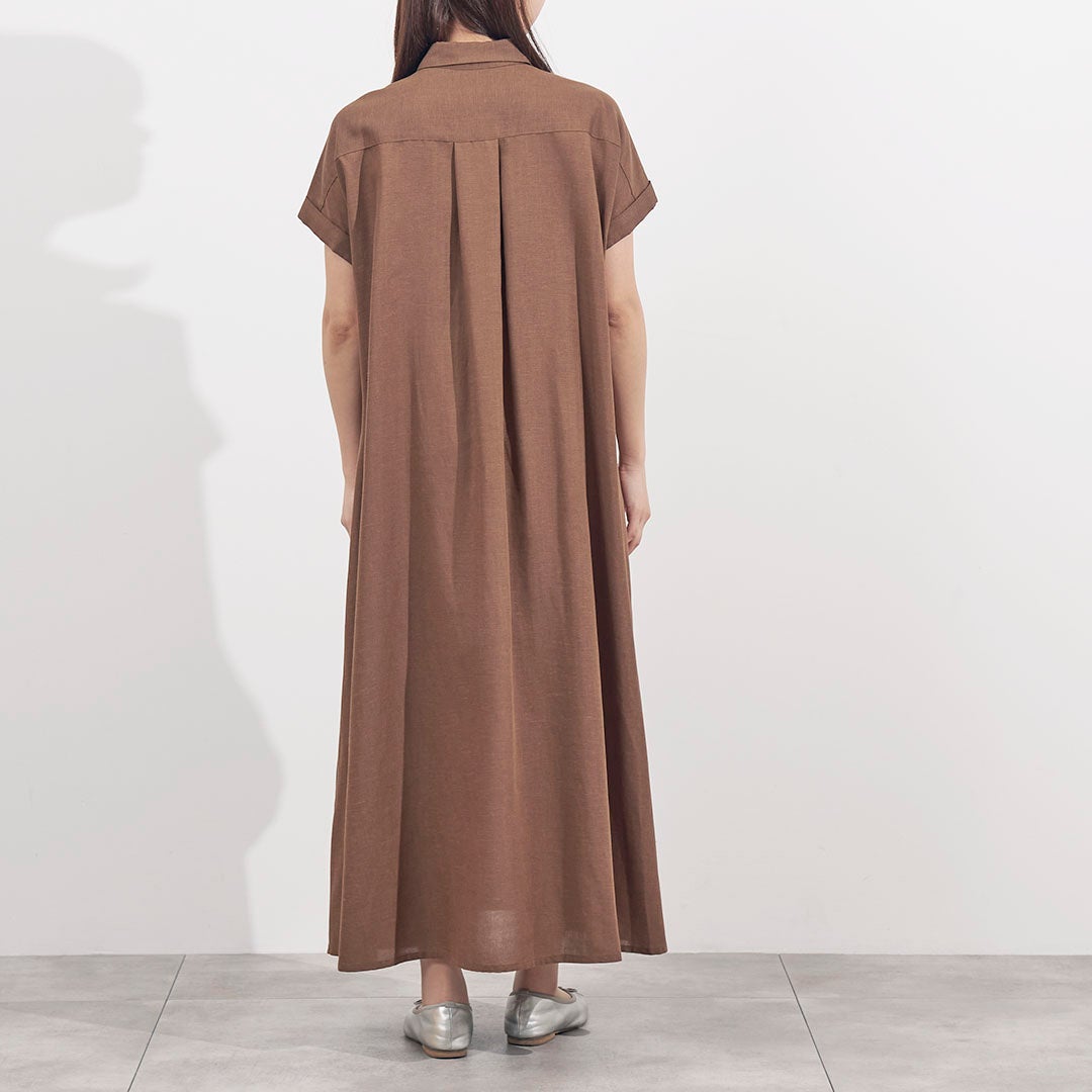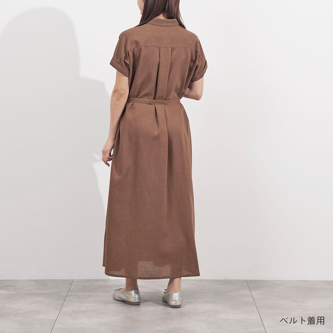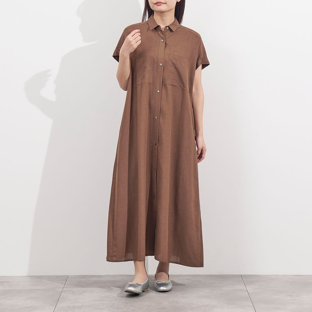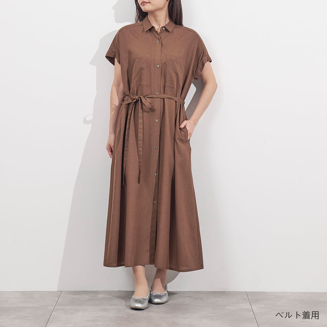 サスティナブル素材のリサイクルポリエステルを使用し環境にやさしく上品見えするシルエットとデザインにこだわった「リネン混ポケットシャツワンピース」が登場