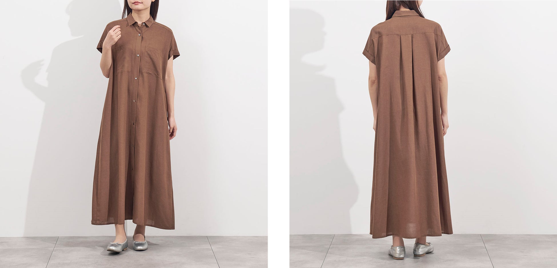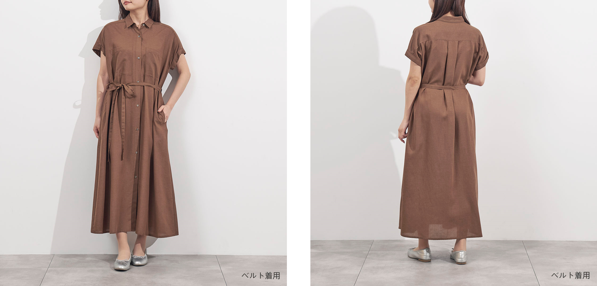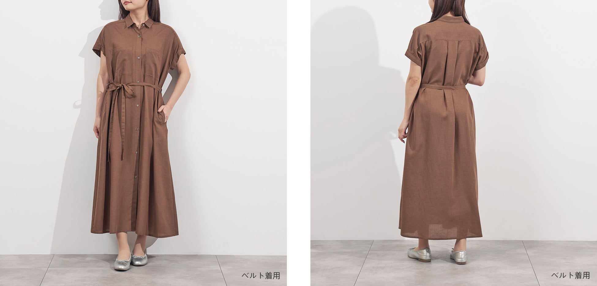 サスティナブル素材のリサイクルポリエステルを使用し環境にやさしく上品見えするシルエットとデザインにこだわった「リネン混ポケットシャツワンピース」が登場