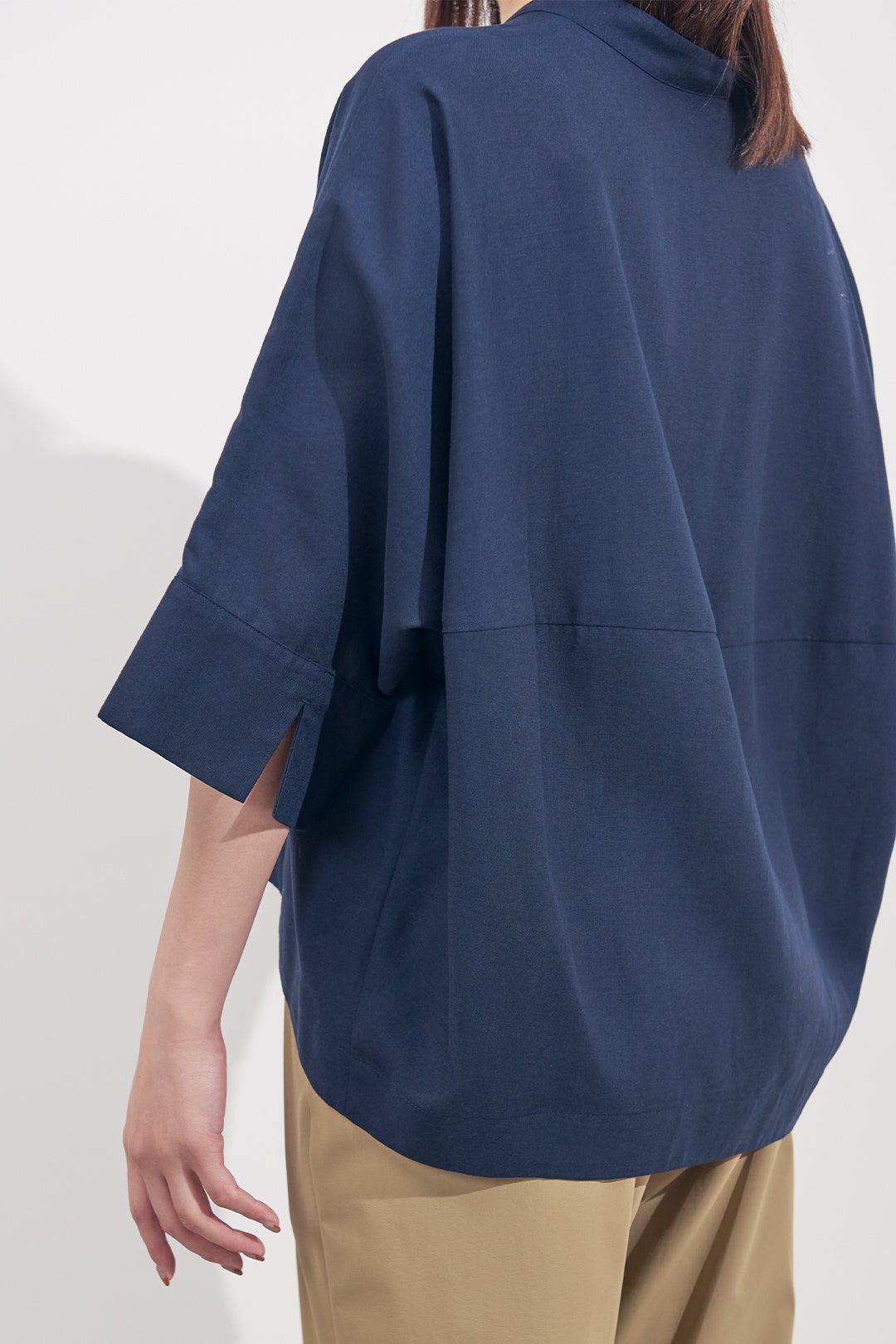 商品名:リネン混コクーンシルエット5分袖シャツ