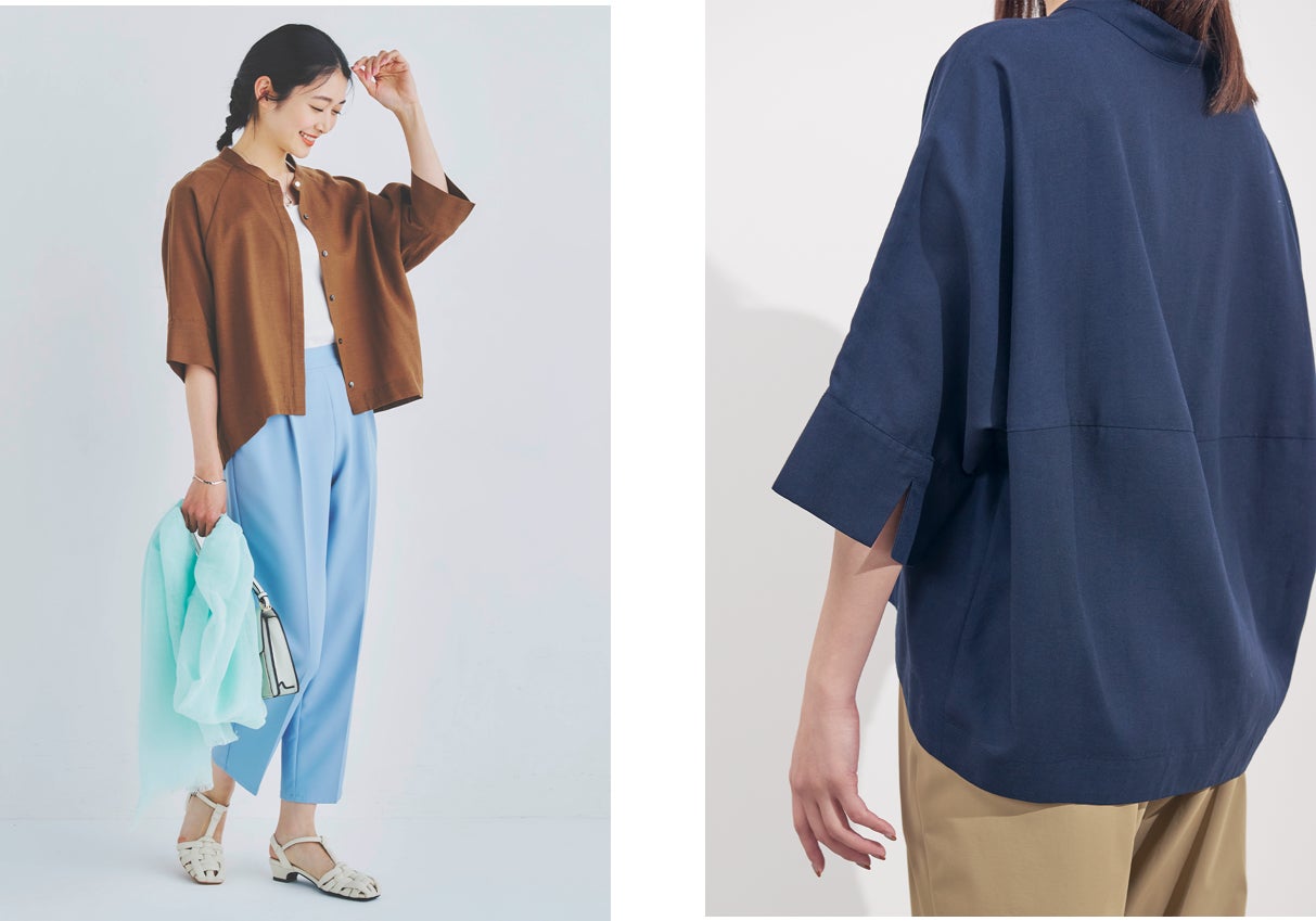 羽織りとしての着こなしもおすすめで、 日焼けや冷房対策でさらっと着ていただけます。