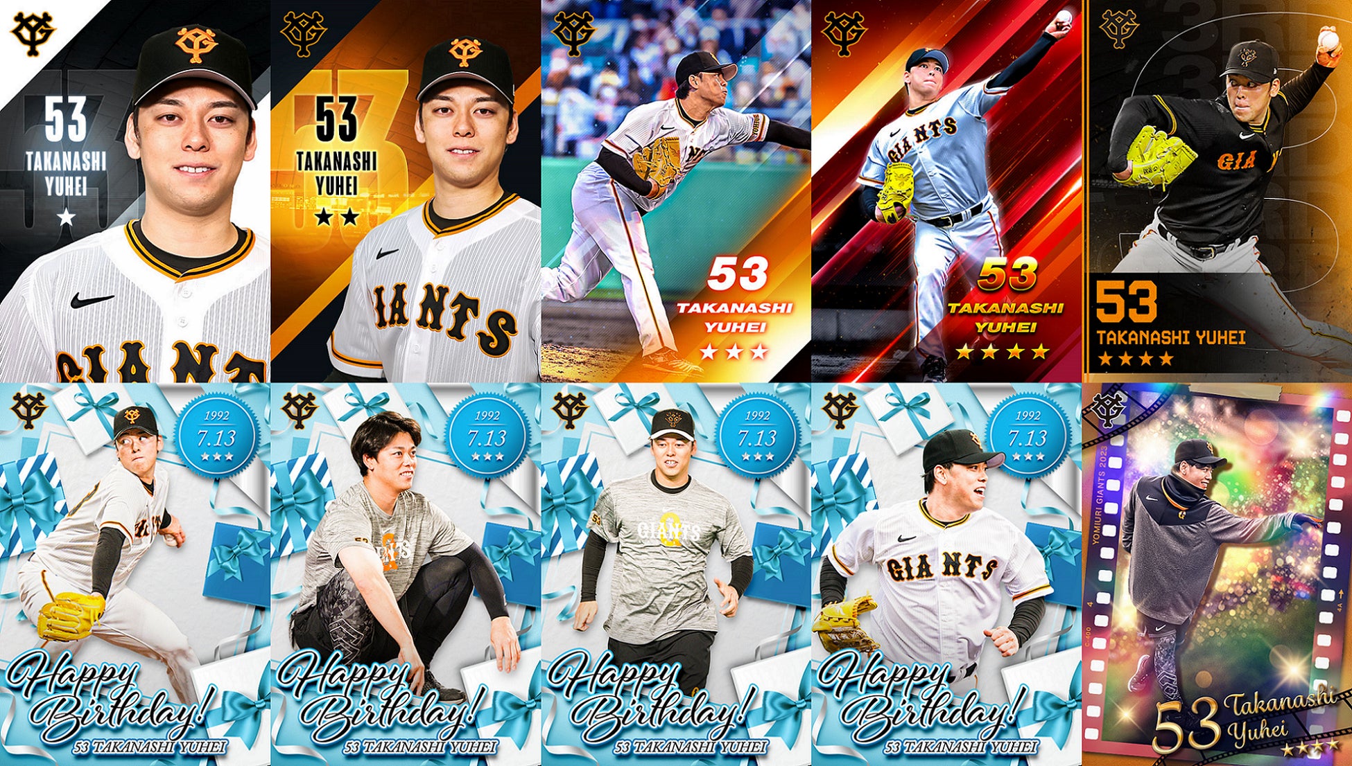 7月28日(金)~7月30日(日)の3日間で開催される高梨雄平投手のGIANTS STORE「誕生祭」期間中に、球団公式通販サイト「ジャイアンツ公式オンラインストア」と「GIANTS OFFICIAL TEAM STORE」で記念グッズを購入されたお客様や、東京ドームの飲食店舗で対象のグルメを購入されたお客様を対象に、公認カードコレクションアプリ「ジャイアンツ・スターズ(Gスタ)」オリジナルデザインのベースボールカードをプレゼントします。カードは全10種類で、デザインは選べません。