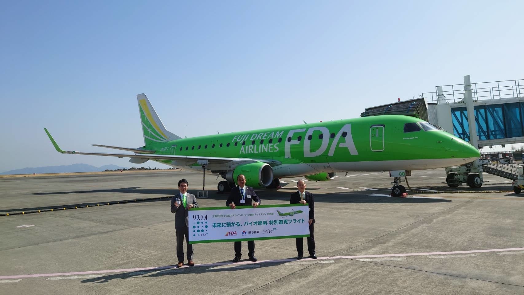 鈴与商事 × FDA × ユーグレナ 定期旅客運送を行うエアライン初のユーグレナ社のバイオジェット燃料 「サステオ」を使用したチャーター運航 について