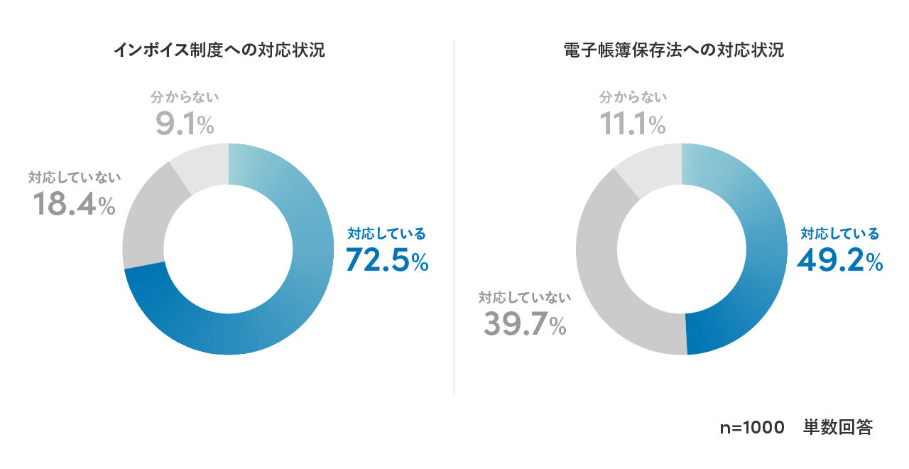 今回の調査で、2023年10月に導入されるインボイス制度への対応は、電子帳簿保存法と比較しても進んでいることが分かりました。
