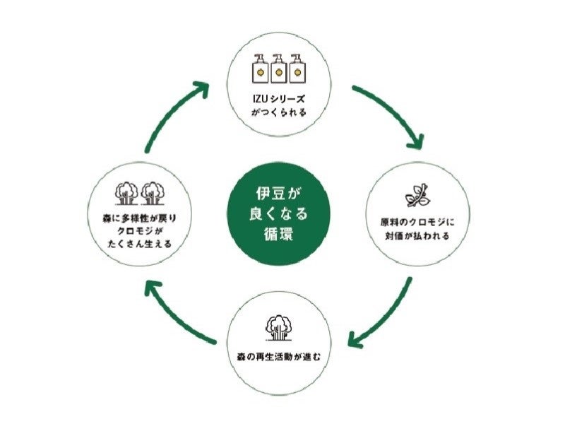 AMUシリーズのハンドウォッシュとボディウォッシュでご好評いただいていた成分はそのままに、IZUシリーズのキー成分を追加。伊豆半島で育ったクロモジですこやかに、 利島の椿でうるおいを与えます。