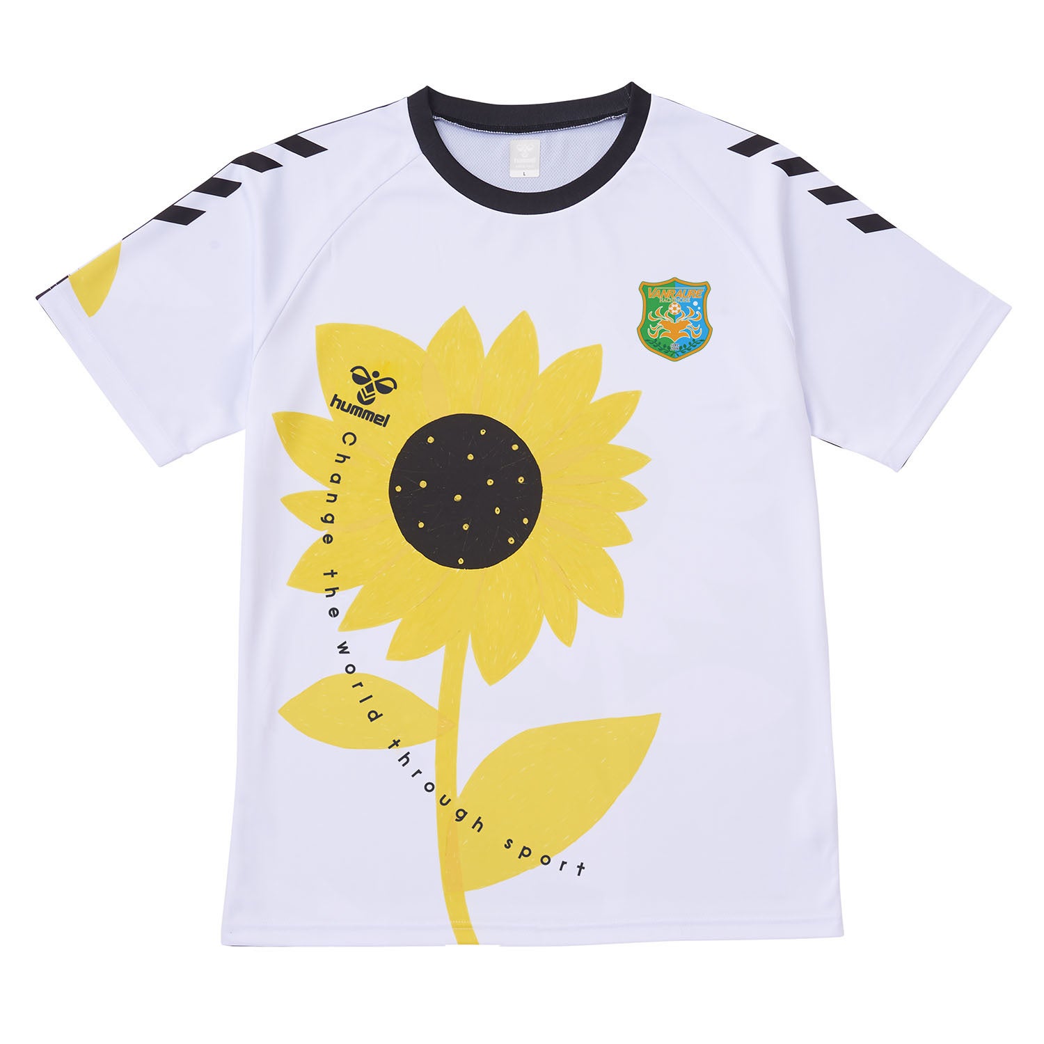 こうした共通のベースデザインに、前面にチームエンブレムをカラーで配置したクラブ仕様のSDGsシャツを、各チームの選手が9月から11月にかけて着用。それに先行して、各クラブから選手着用シャツを発売。ヒュンメルからは、前面にチームエンブレムのないシャツを発売。売上の一部をSDGsに繋がるように国内外で寄付やイベントを行います。