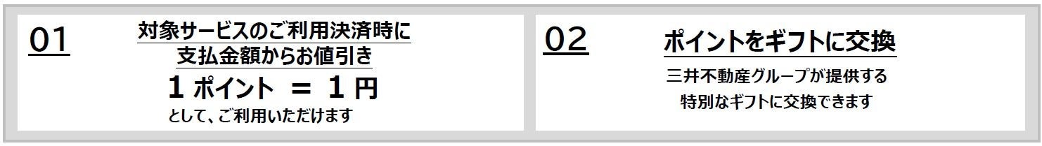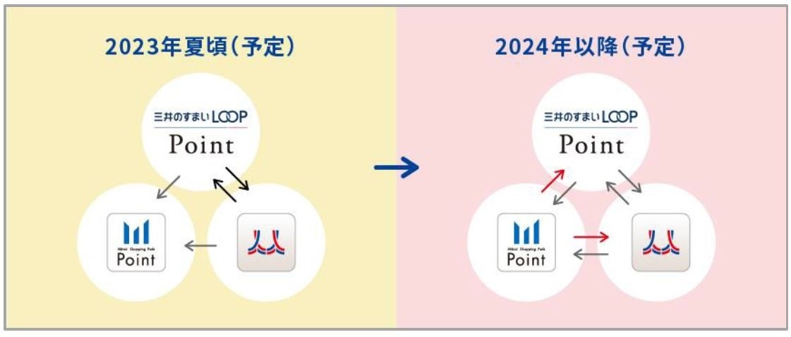 「三井のすまいLOOPポイント」、「MGH Rewards Clubポイント」、「三井ショッピングパークポイント」の全てのポイントプラグラムのポイントの相互交換が可能となります。