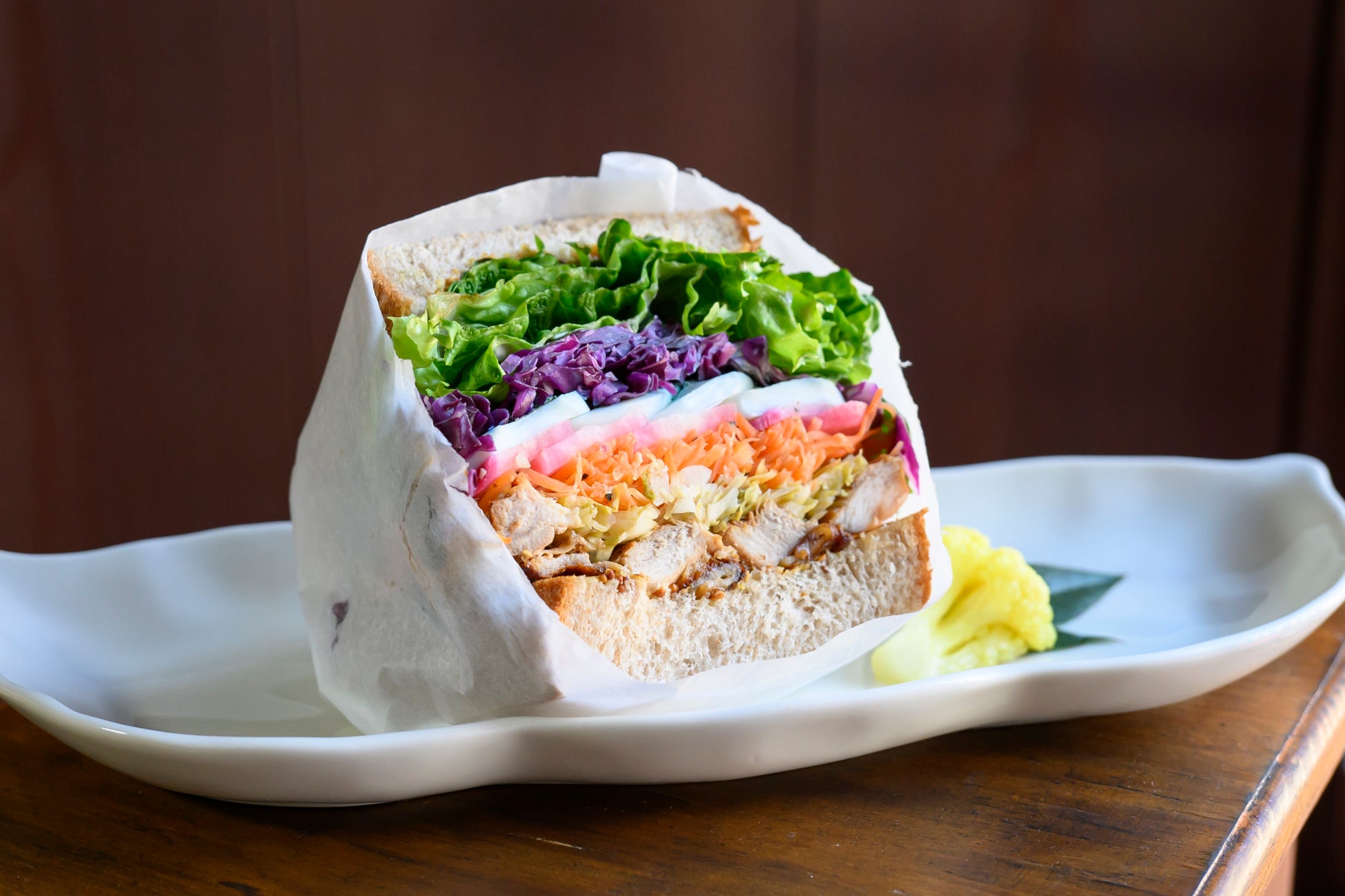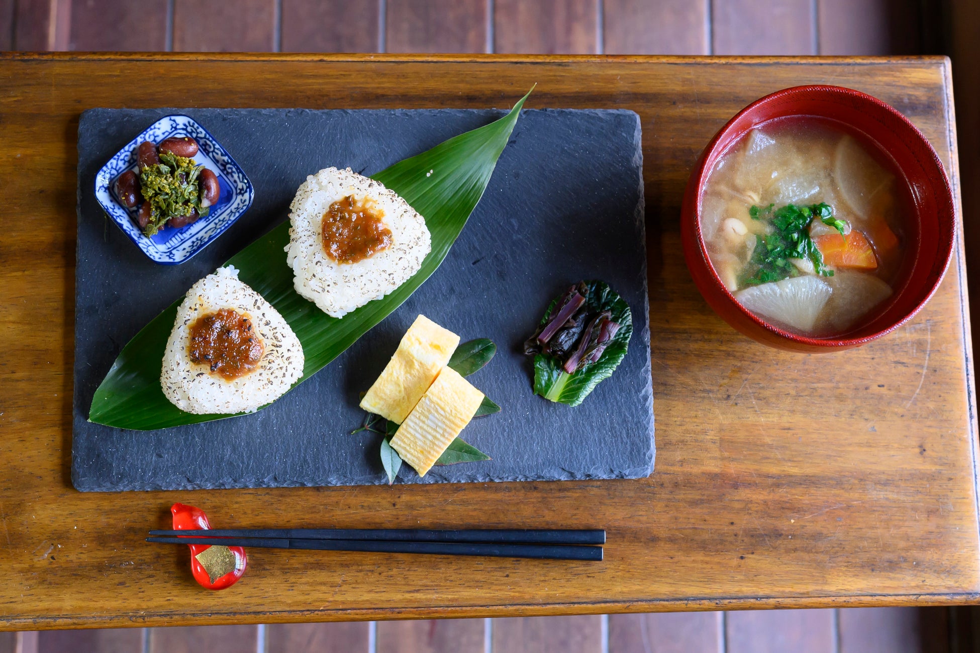 発酵食品づくりの体験後には、オカンが愛情を込めてつくった発酵ランチを楽しめます。この地の伝統的な内容や、オカンのアイディアを活かしたものなどその時によって内容が異なります。例えば、赤かぶら漬けとザワークラウトを具とした「発酵サンドイッチ」や山椒味噌を使った「戦国焼きおにぎり」などバリエーション豊かです。