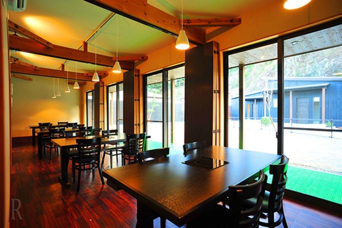 わんこの宿ゆるりでは、愛犬と一緒にご利用いただけるレストランをご用意しております。間仕切りで仕切られるため、プライベート空間で落ち着いてお食事いただけます。