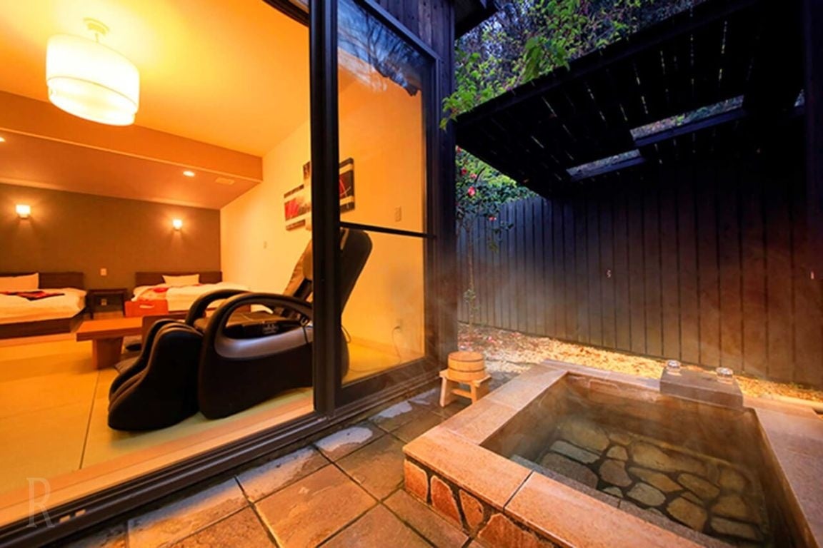 客室には通常のバスルームと、全国でも珍しいわんちゃんと一緒に入れる天然温泉かけ流し露天風呂をご用意しております。愛犬と一緒に、別府の温泉に癒されてみてください。