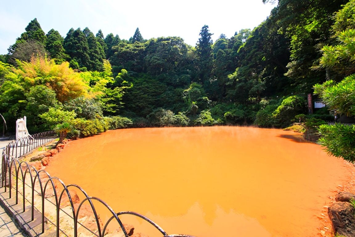 日本最古の天然地獄「血の池地獄」は、わんこの宿ゆるりから徒歩5分の場所にあります。