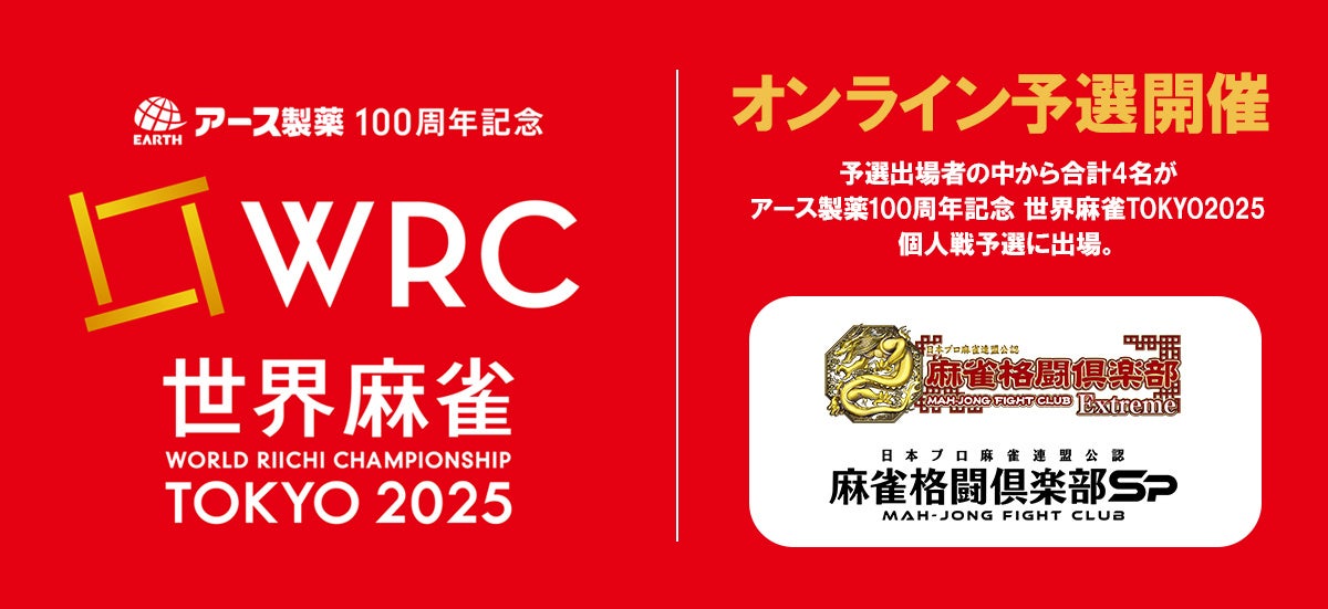 株式会社コナミアミューズメントは、WRCが主催する「アース製薬100周年記念 世界麻雀TOKYO2025」に協賛し、アーケードゲーム『麻雀格闘倶楽部 Extreme』とモバイルゲーム『麻雀格闘倶楽部Sp』にて開催されるオンライン予選を開始したことをお知らせします。