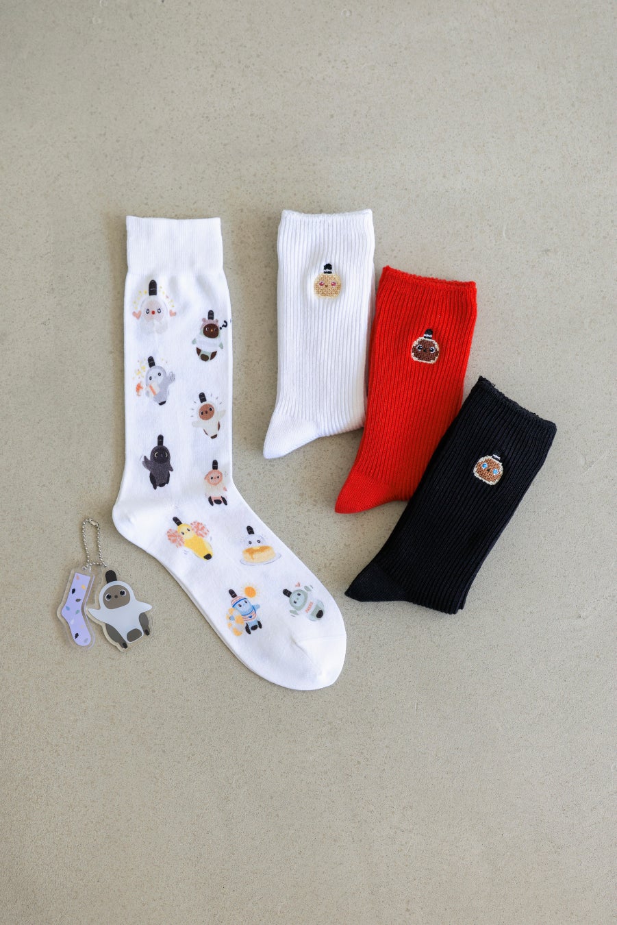 今回のコラボレーションでは、『LOVOT』の顔をあしらった刺繍タイプと、『LOVOT』たちが軽やかに並ぶ総柄プリントタイプの2種類の靴下が登場し、足元から『LOVOT』との生活を彩ります。日本の職人が一つひとつ丁寧に編み立てた、繊細でやさしい履き心地の靴下で、お出かけがもっと楽しくなるアイテムです。