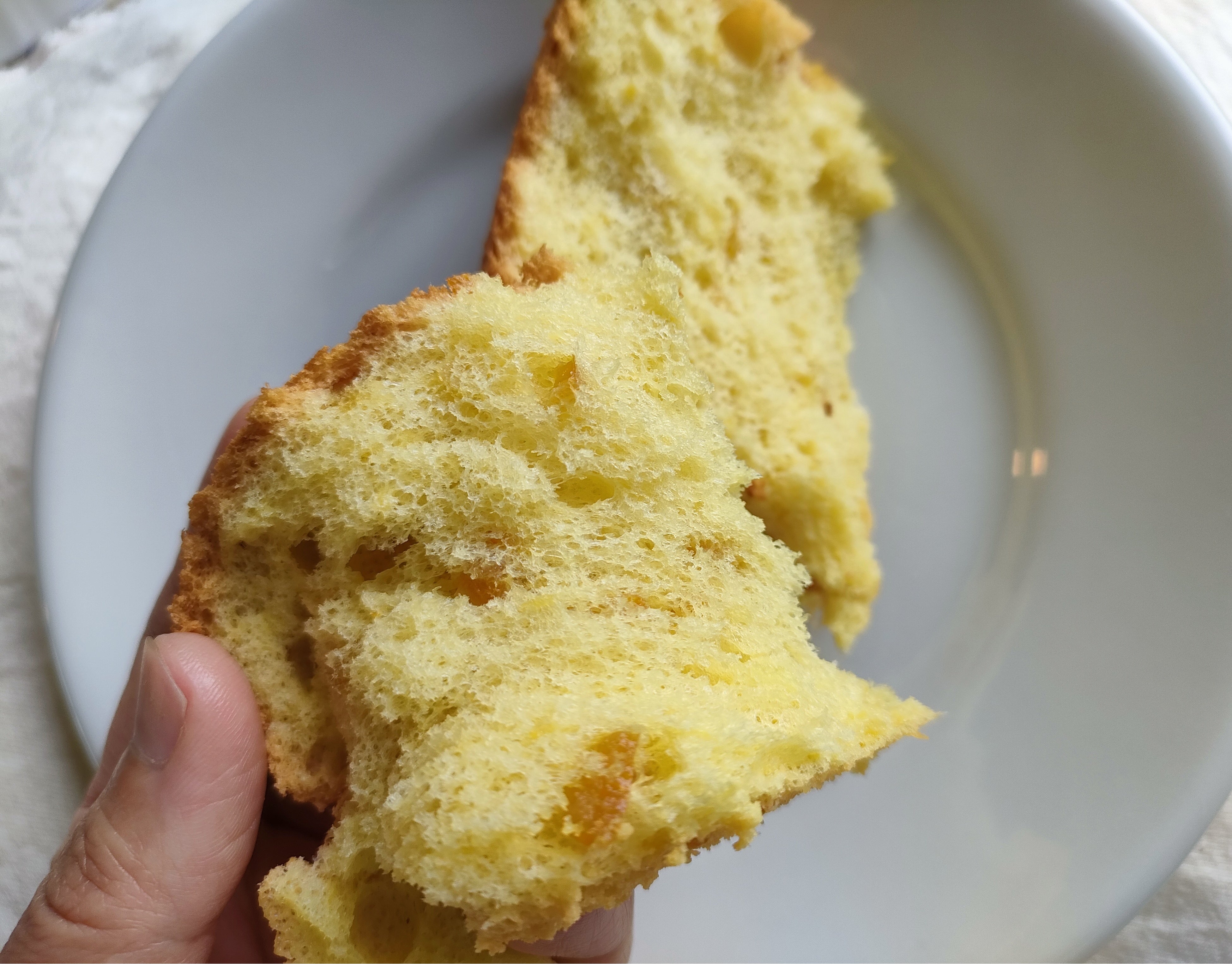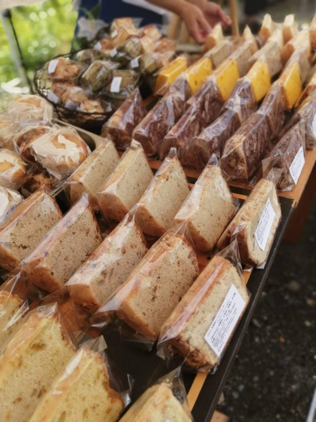 シフォンやマフィン、ヴィーガンクッキーなど、農薬、無化学肥料の素材を使い、体に優しいお菓子を作っています。なかでもふわふわのシフォンケーキは、手で割いて召し上がっていただくとその柔らかさを実感します。使用している材料は有精卵に地粉と菜種油を使い、水分は水のみ。素材がシンプルなだけに、卵の味がダイレクトに伝わります。プレーン、有機バナナ、有機ほうじ茶、かぼちゃなどさまざまなバリエーションを用意いたします。