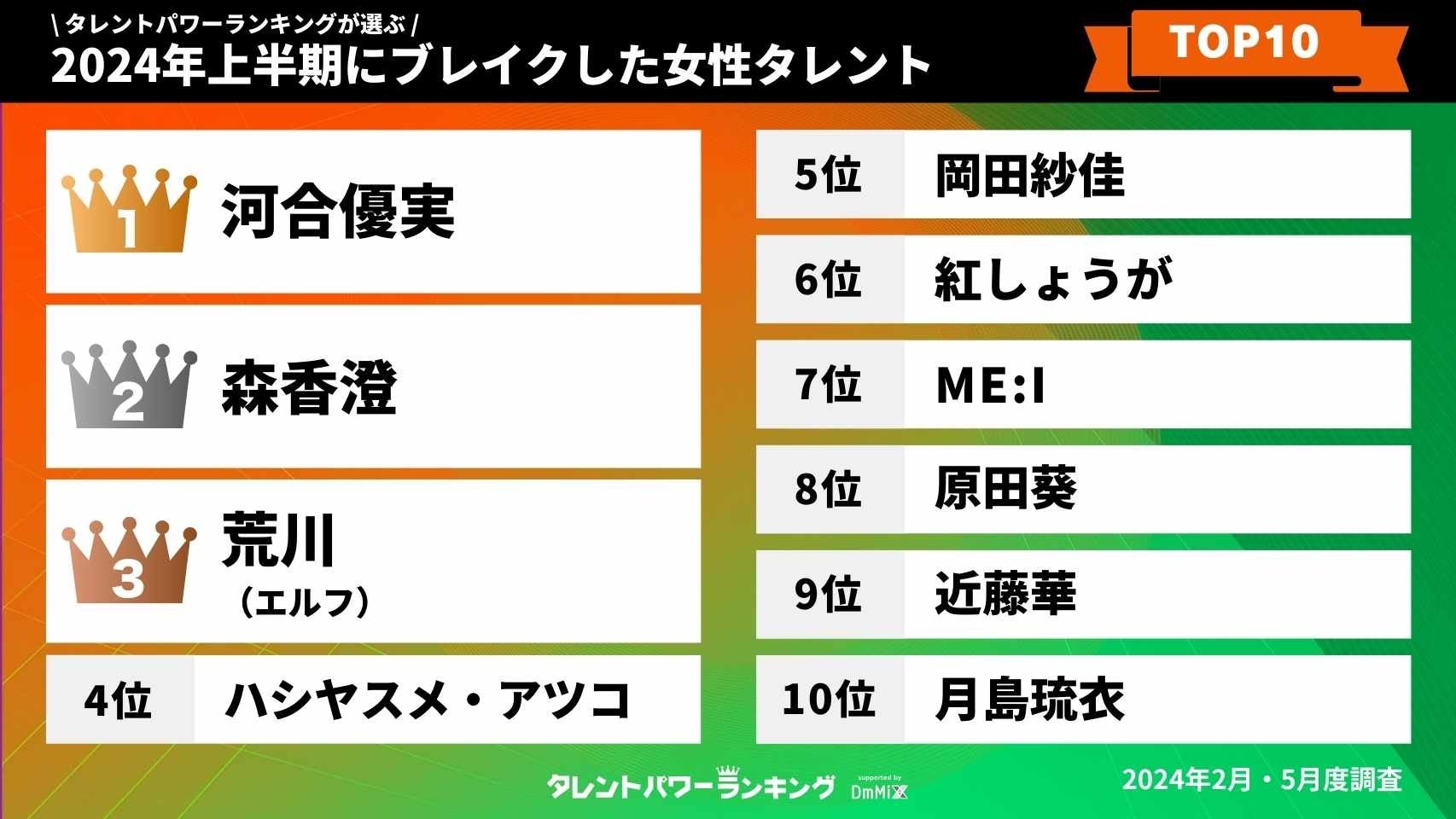 『タレントパワーランキング』では、様々なジャンルで2024年上半期に活躍しブレイクしたタレントについて、男女別でそれぞれランキング形式にまとめました。