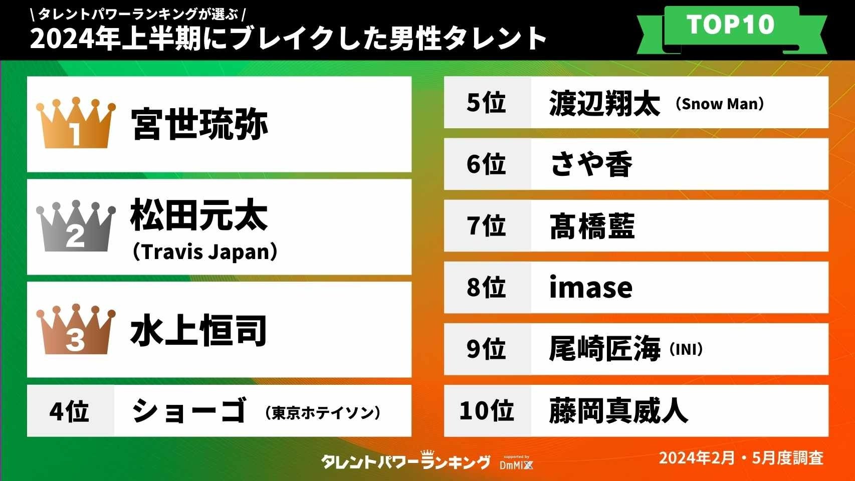 タレントパワーランキングが選ぶ2024年上半期にブレイクした男性タレント・女性タレントTOP10