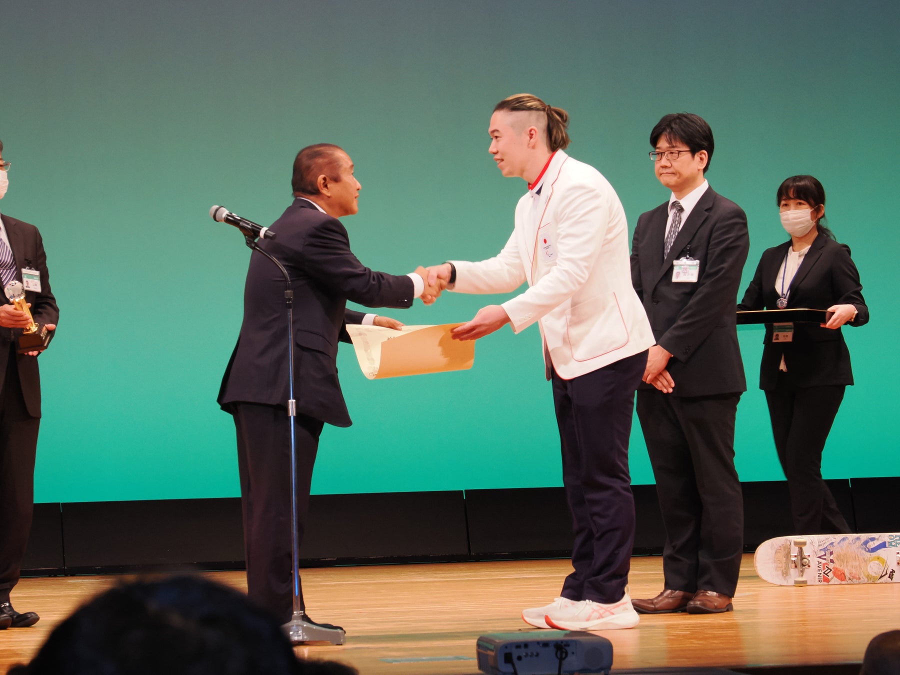 また、世界的又は全国的な競技会等において極めて優秀な成績を収め、もしくは、我が国の文化の向上及び発展に極めて大きな貢献をした方を対象に、「特別表彰」として2名と1団体が表彰されました。
