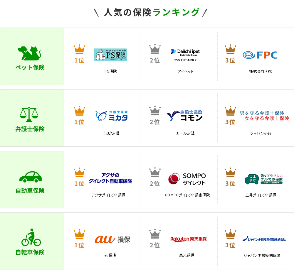 日々の生活からレジャーや旅行など、もしもの時に備えておきたいのが保険です。こちらのサイトでは、損害保険・少額短期保険会社の各種商品の概要について解説し、ご紹介しております。また、弊社ではペット保険などの保険を取り扱っておりますので大切な家族の万が一にも安心です。