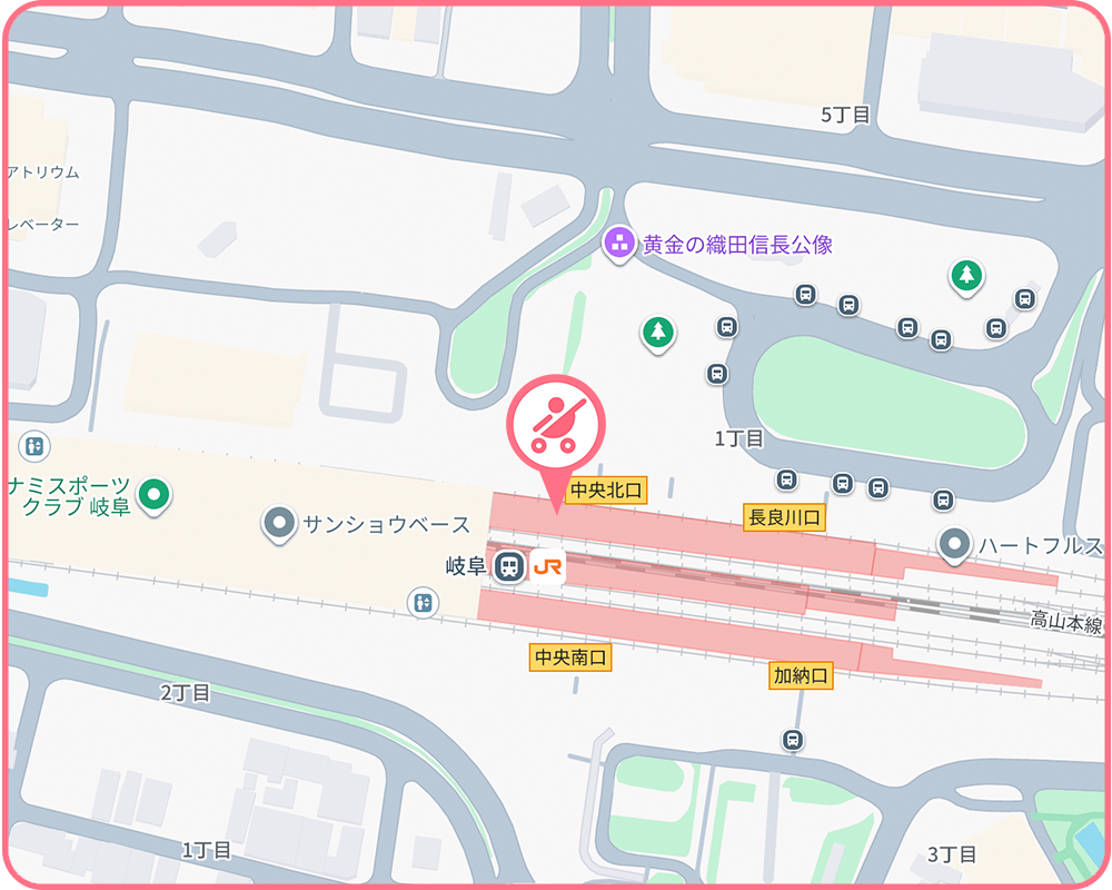JR東海:中央本線 千種駅(24時間)、東海道本線 尾張一宮駅(5:10 ~ 0:30)、岐阜駅(4:30 ~0:40)