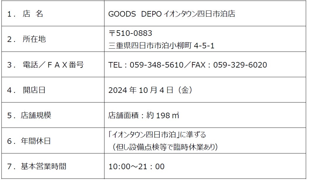 【「GOODS DEPOイオンタウン四日市泊店」概要】