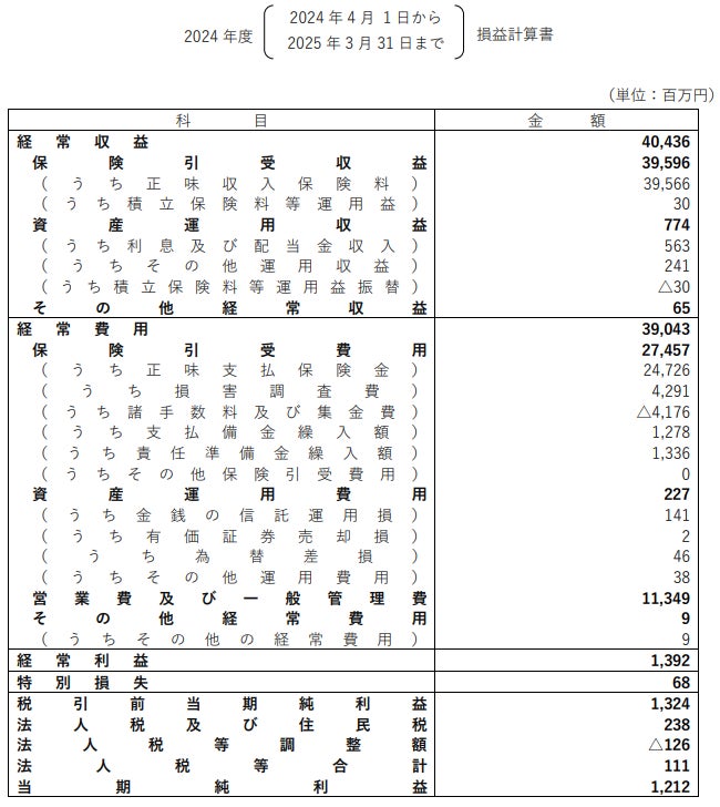 SBI損害保険株式会社(本社:東京都港区、代表取締役社長:小野尚)の2025年3月期(2024年4月1日~2025年3月31日)の決算概要について、お知らせいたします。