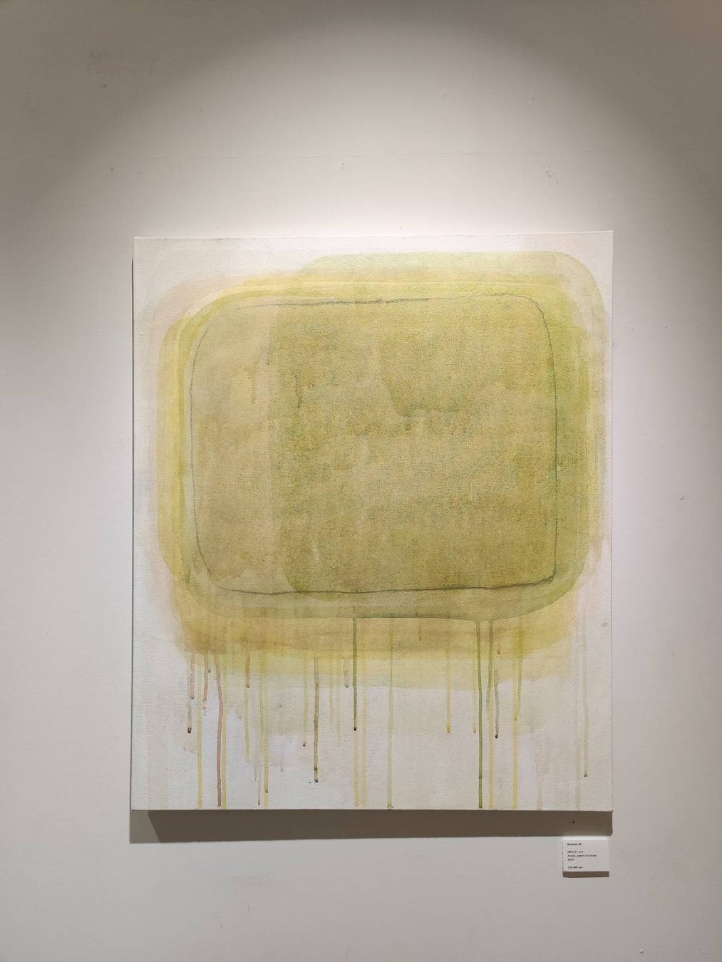 また、“泉”を意味するドイツ語「Brunnen」をタイトルに冠したシリーズは、滲みと線の重なりから成る抽象絵画作品です。水のように拡がる形象と、鉛筆による構造的な線が織りなす画面は、観る者に時間や記憶の深層を想起させます。