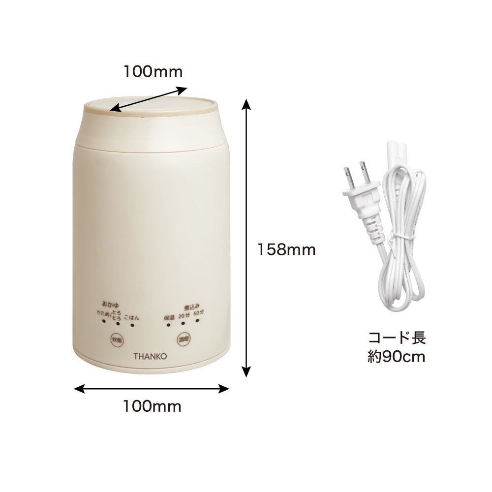 まるでスープジャーのような見た目ですが、実際はヒーターを内蔵し、コンセントに繋いでグツグツと加熱調理ができる「持ち運べる炊飯器」そのもの。