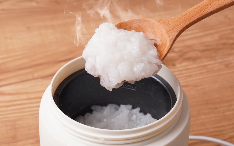 使い方は生米と水を入れてボタンを押すだけ。約25分で出来立てのおかゆを食べられます。(※2)