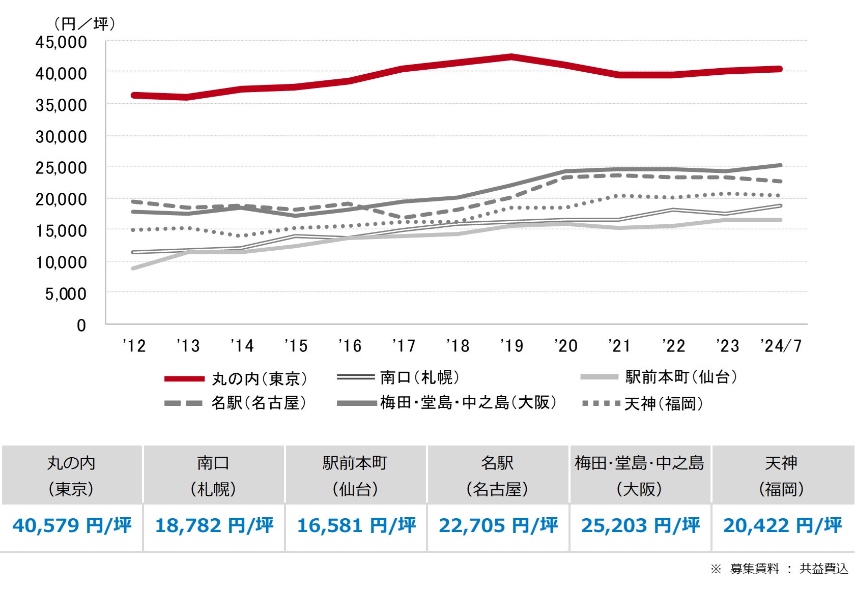 <募集賃料の推移(6大都市 大規模ビル・主要駅前地区)>