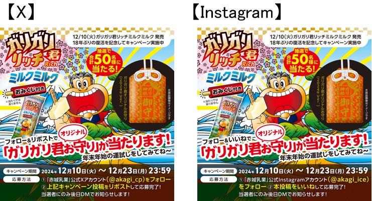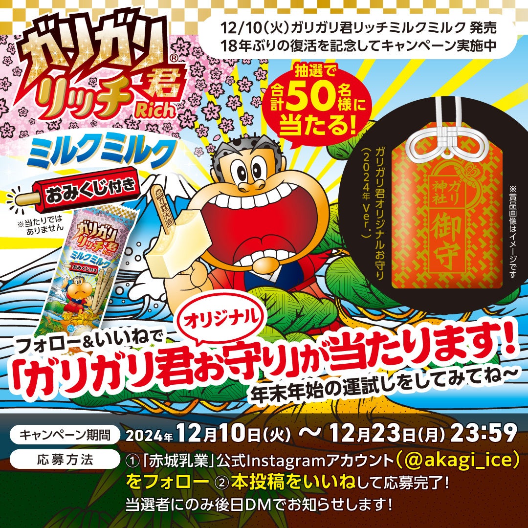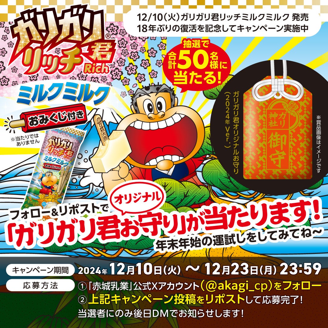 また、今回の商品発売を記念して、12月10日(火)より、 2006年当時にも賞品として使用していた、「ガリガリ君オリジナルお守り」が当たるSNSキャンペーンも実施いたします。ぜひ、ご応募ください。