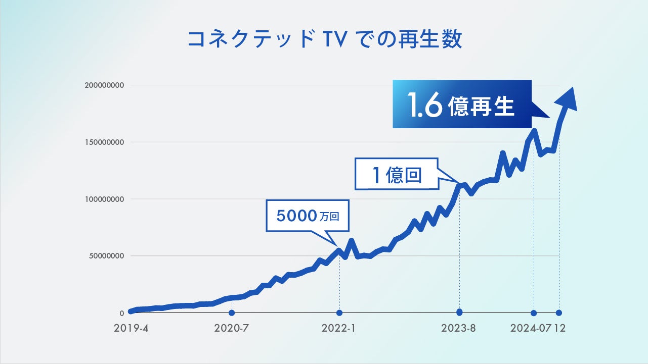 月間動画再生数は大幅な成長を続けており、2024年1月に初めて4億回を超えてから1年たたずに、1億回近く増加しました。特にCTVでの再生数の伸びは顕著で、前年同月比で約145%(※3)に伸長しています。