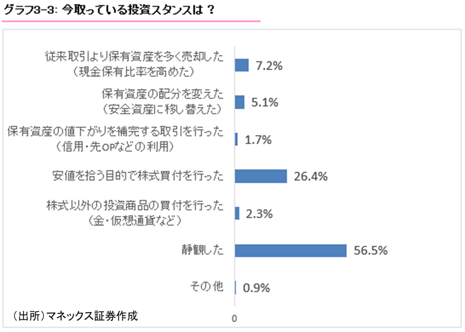 2-2. ウクライナ侵攻でマーケットが不安定な中の投資スタンスは「静観した」が最多